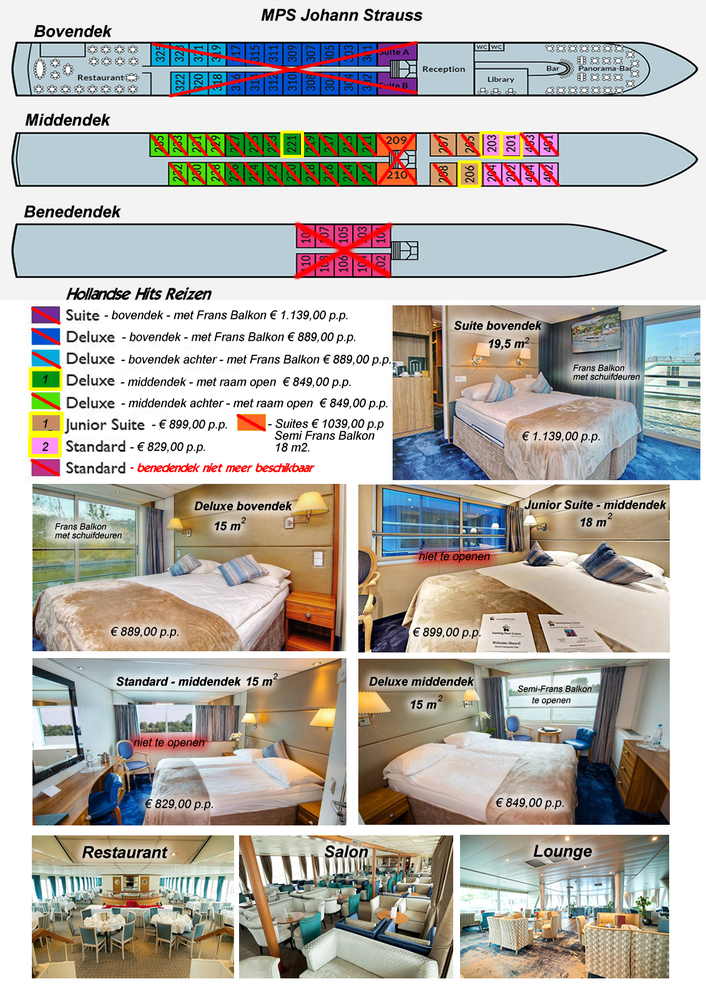 Op het Middendek zijn de Deluxe hutten (15m2 ) en Suites (18m2 ) voorzien van grote panorama ramen welke geopend kunnen worden.